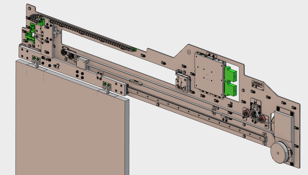 The door can be manually moved to the intended safety position at any time, even in the event of a complete power failure. These mechanical functions are superimposed on the electronic functions. The system also recognizes the activation of these mechanics and automatically resets the door system as soon as the power supply is restored.